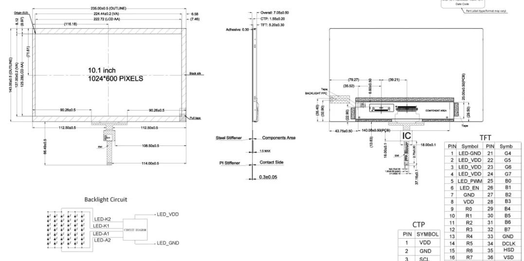 Dimensi langsing hanya 235mm × 143mm × 7.05mm menjadikannya sesuai untuk peranti padat. Dikuasakan oleh 3.3V dan menggunakan kabel FFC 40 -pin (6 -pin FFC untuk CTP), modul skrin sentuh PCAP industri 10.1 inci beroperasi dalam suhu antara -20 ° C hingga 70 ° C dan mempunyai julat suhu penyimpanan -30 ° C hingga 80 ° C, memastikan operasi yang boleh dipercayai walaupun dalam persekitaran harsh.